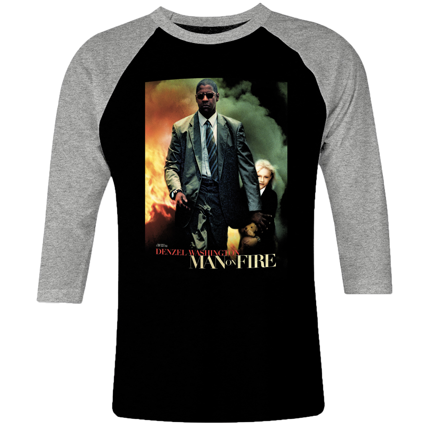6cp I 055 Man On Fire Raglan T Shirt 3 4 Sleeve Denzel Washington Tony Scott Cult Movie Film Serie Retro Vintage Tshirts Shirt T Shirts For Men Cotton Design Handmade Logo New