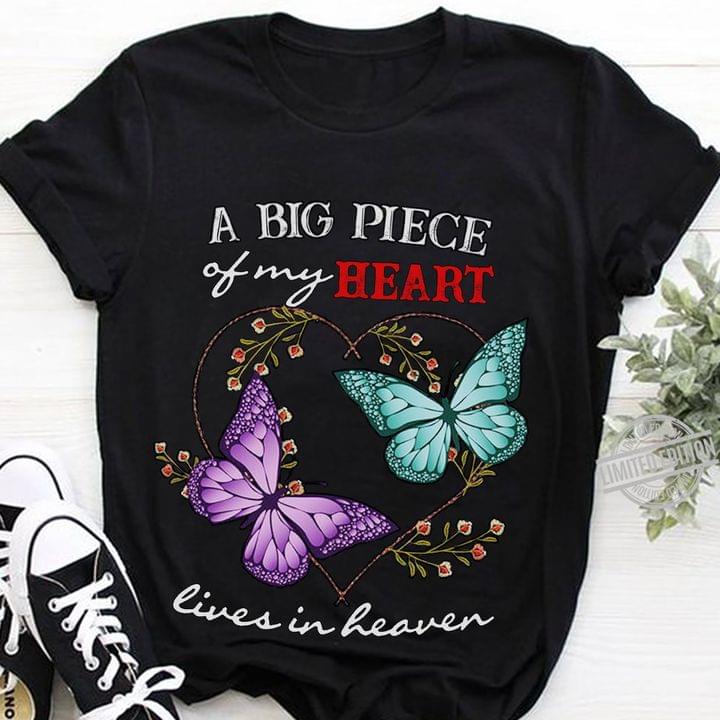 A Big Piece Of My Heart Lives In Heaven Couple Beauty Butterflies Shirt
