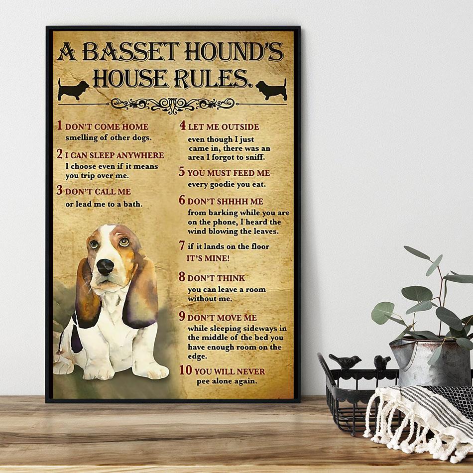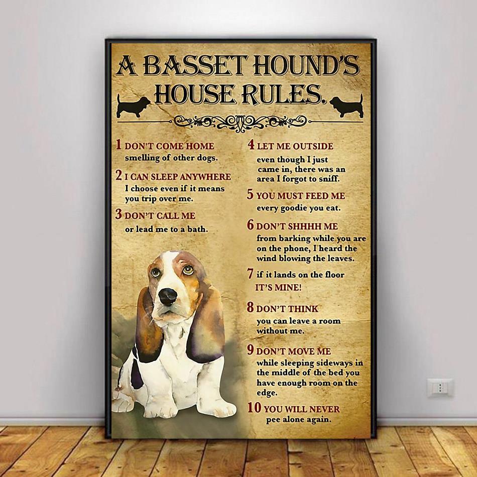 A Basset Hound House Rules Poster Canvas Decor 1