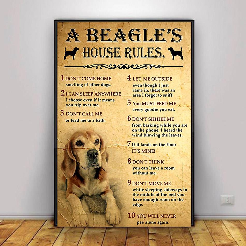 A Beagle House Rules Poster Canvas Decor 1