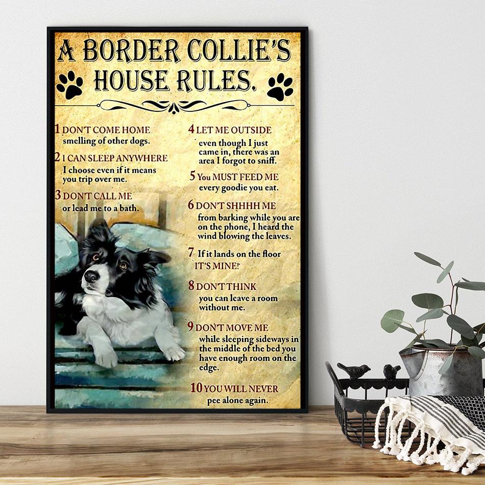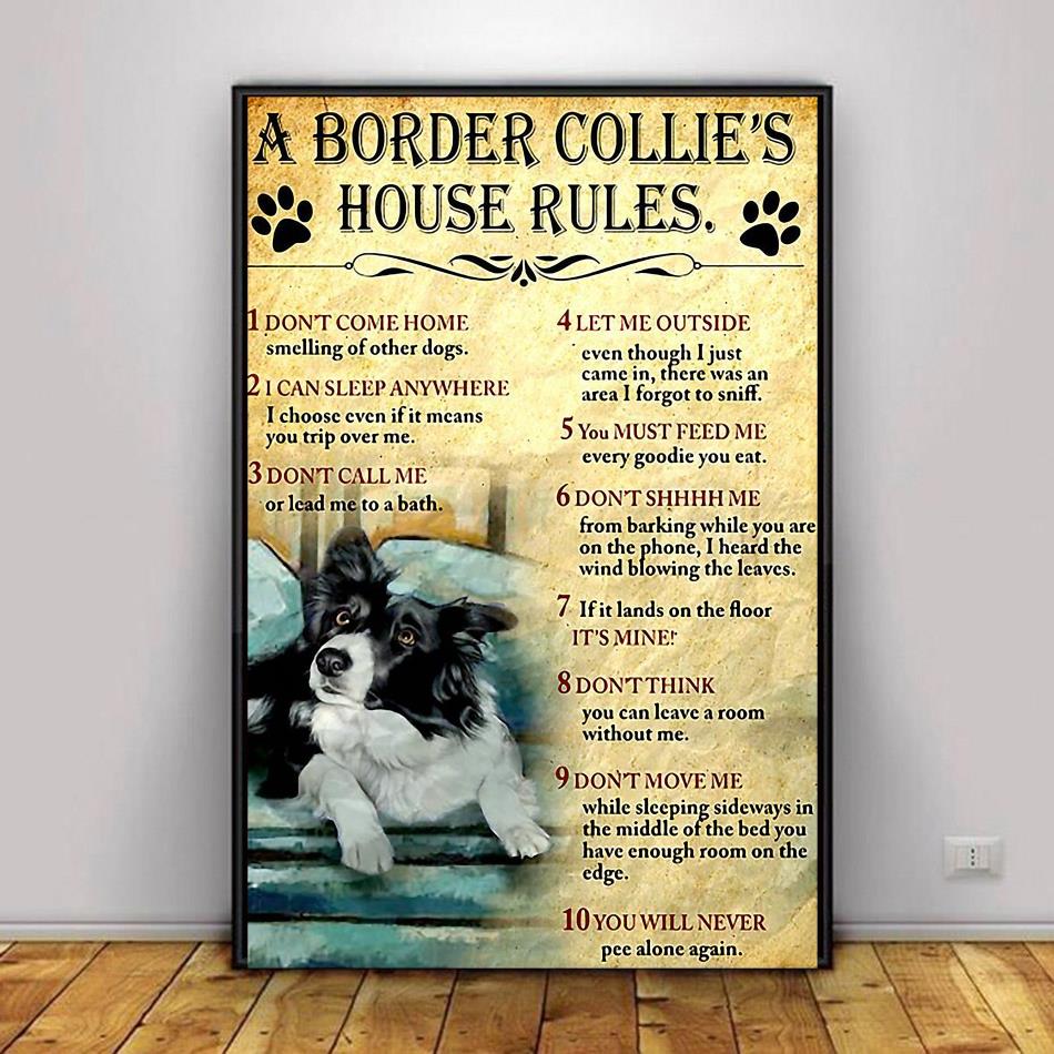 A Border Collie House Rules Poster Canvas Decor 1