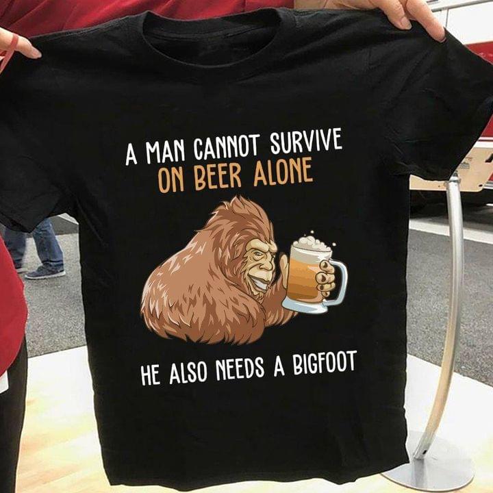 A Man Cannot Survive On Beer Alone He Also Need A Bigfoot Friend Shirt