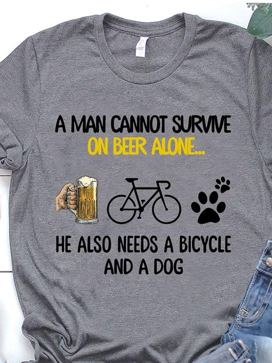 A Man Cannot Survive On Beer Alone He Also Needs Bicycle And A Dog Shirt