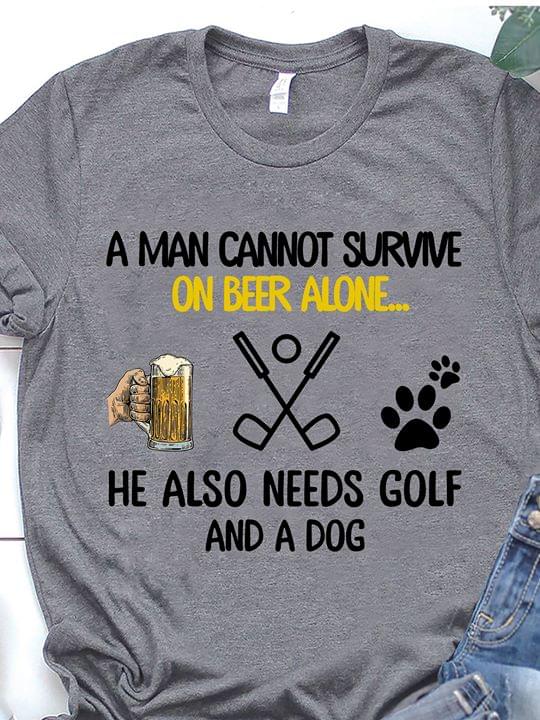 A Man Cannot Survive On Beer Alone He Also Needs Golf And A Dog Shirt