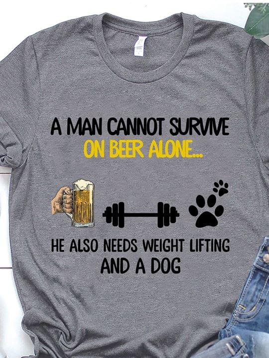 A Man Cannot Survive On Beer Alone He Also Needs Weight Lifting And A Dog Shirt