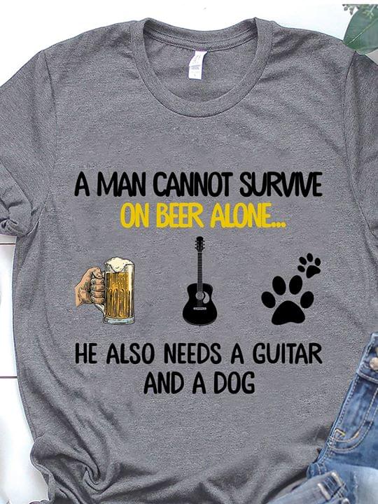 A Man Cannot Survive On Beer Alone He Needs Guitar And A Dog Shirt