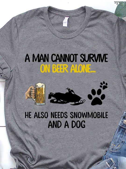 A Man Cannot Survive On Beer Alone He Needs Snowmobile And A Dog Shirt