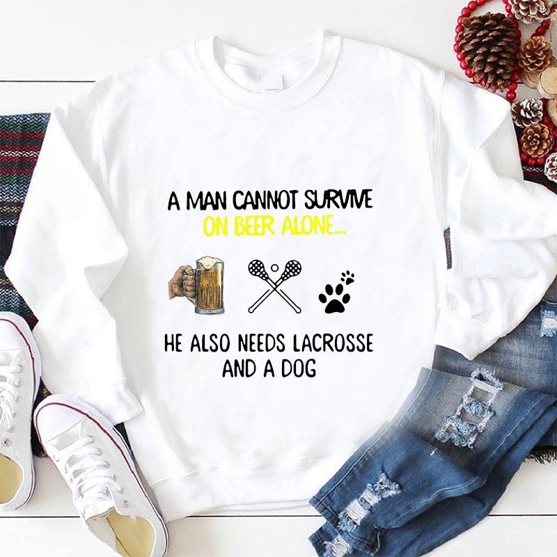 A Man Cannot Survive On Beer Alone He Also Needs Lacrosse And A Dog Unisex Longsleeve