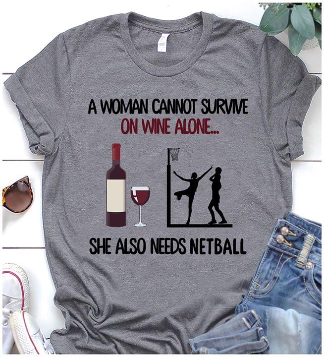 A Woman Cannot Survive On Wine Alone She Also Needs Netball Shirt