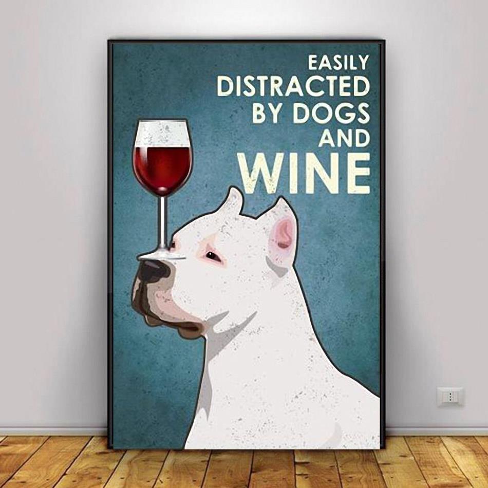 American Pit Bull Terrier Easily Distracted By Dogs And Wine Poster Canvas Decor 1