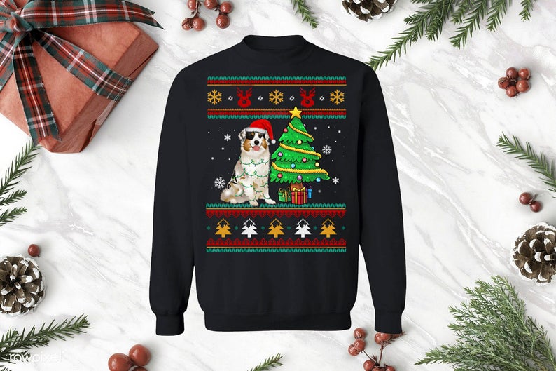 Australian Shepherd Dog Ugly Pine Tree Christmas T-shirt Sweatshirt Hoodie