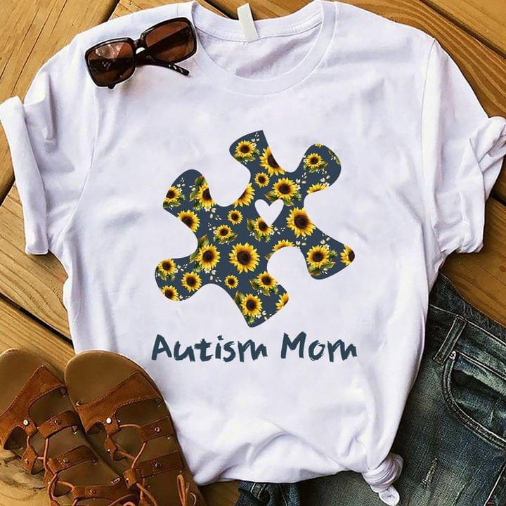 Autism Mom Vintage Sunflower Puzzle Family Shirt