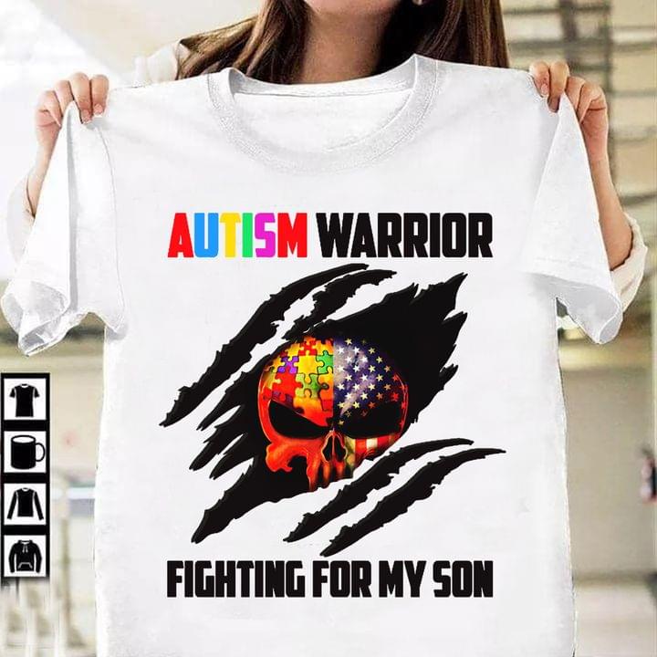 Autism Warrior Fighting For My Son American Flag Jigsaw Puzzle Skull Shirt