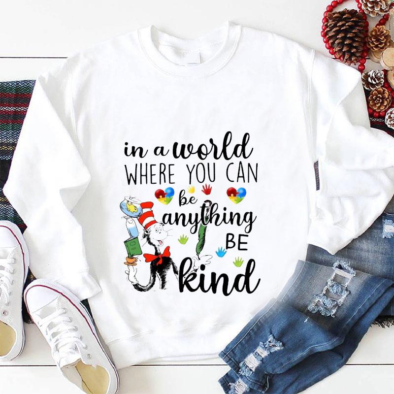 Autism Teacher Dr Seuss In A World Where You Can Be Anything Be Kind Unisex Longsleeve
