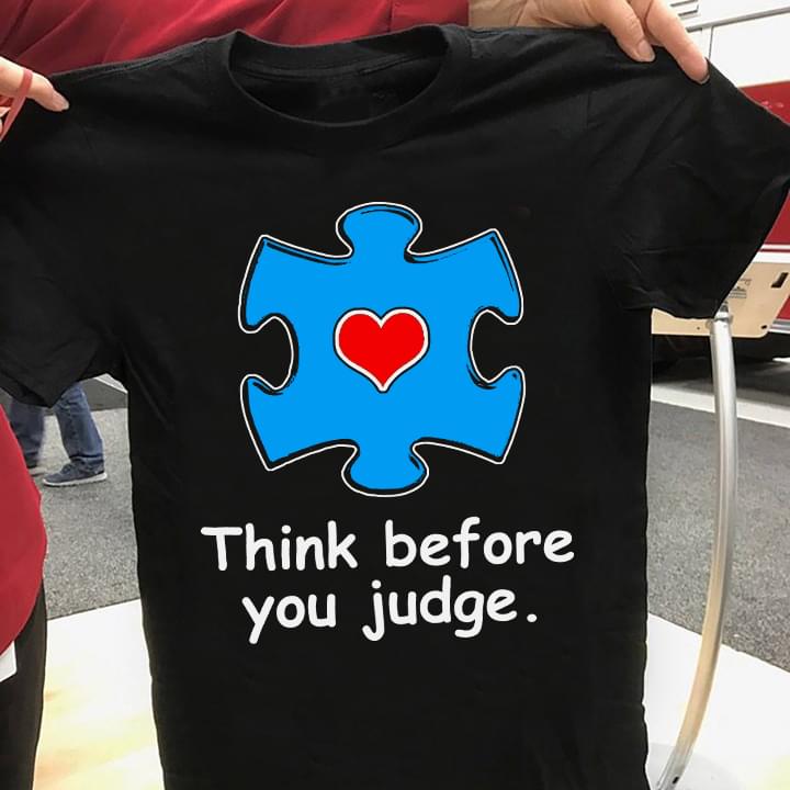 Basic Think Before You Judge Quote Red Heart In Blue Puzzle Autism Shirt