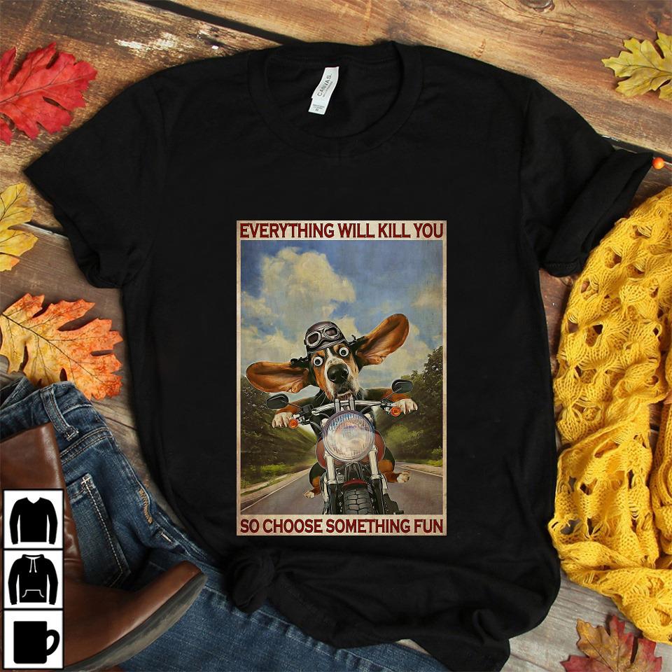 Basset Hound Motorcycle Everything Will Kill You So Choose Something Fun Poster Canvas Unisex T-shirt