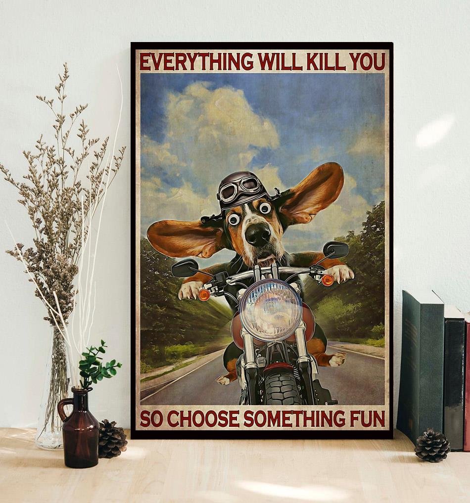 Basset Hound Motorcycle Everything Will Kill You So Choose Something Fun Poster Canvas