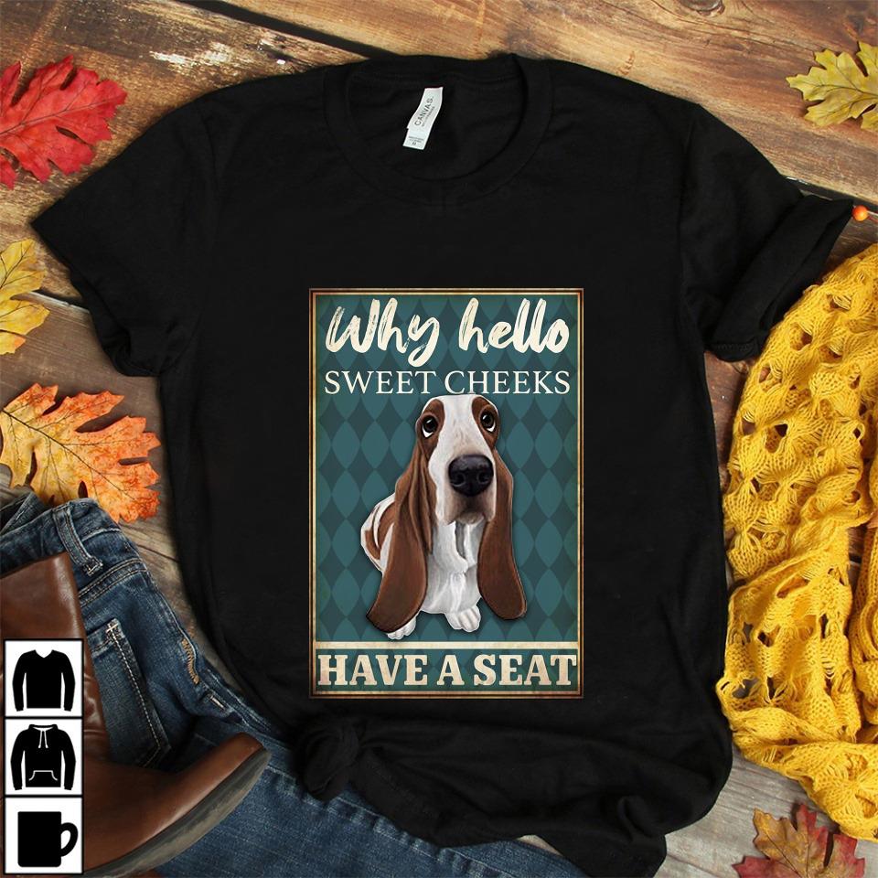Basset Hound Why Hello Sweet Cheeks Have A Seat Poster Unisex T-shirt