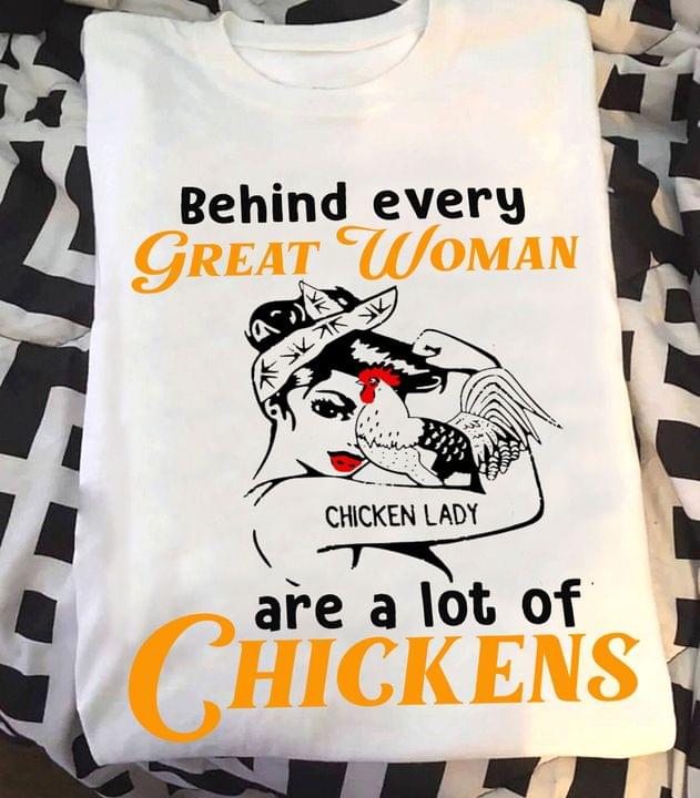Behind Every Great Woman Are A Lot Of Chickens Lady Girl Wearing Headband Holding Chicken Lady Shirt