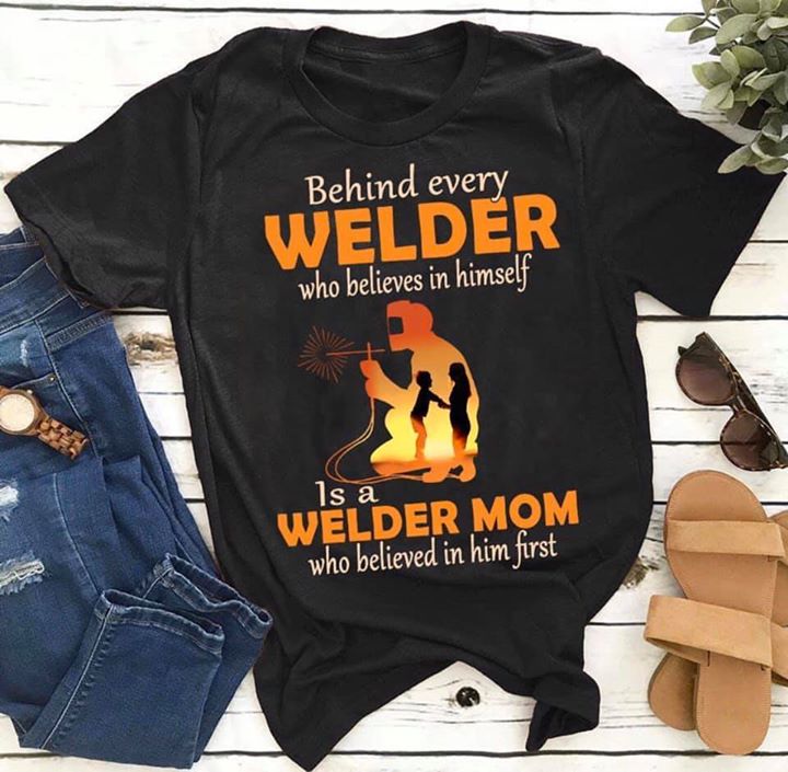 Behind Every Welder Who Believes In Himself Is A Welder Mom Shirt