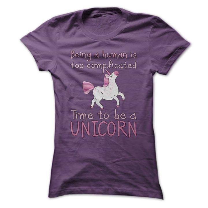 Being A Human Is Too Complicated Time To Be A Unicorn Cute Animated Unicorn Shirt