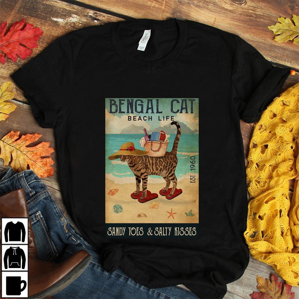 Bengal Cat Beach Life Sandy Toes And Salty Kisses Poster Canvas Unisex T-shirt