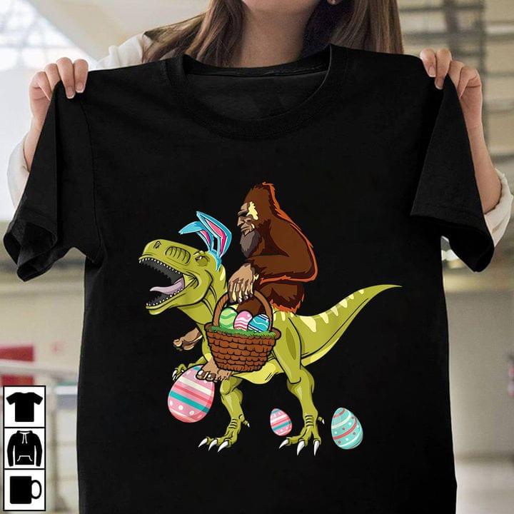 Bigfoot Riding Dinosaur Rabbit Bunny T-rex Easter Egg Shirt