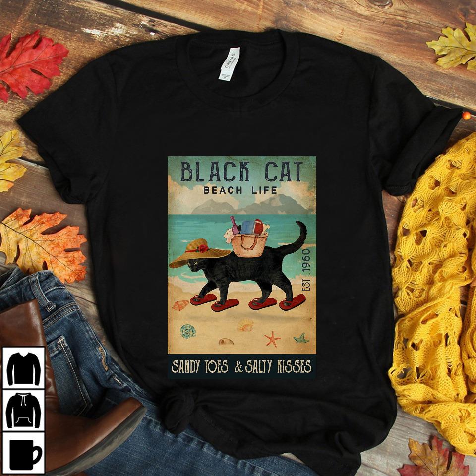 Black Cat Beach Life Sandy Toes And Salty Kisses Poster Canvas Unisex T-shirt