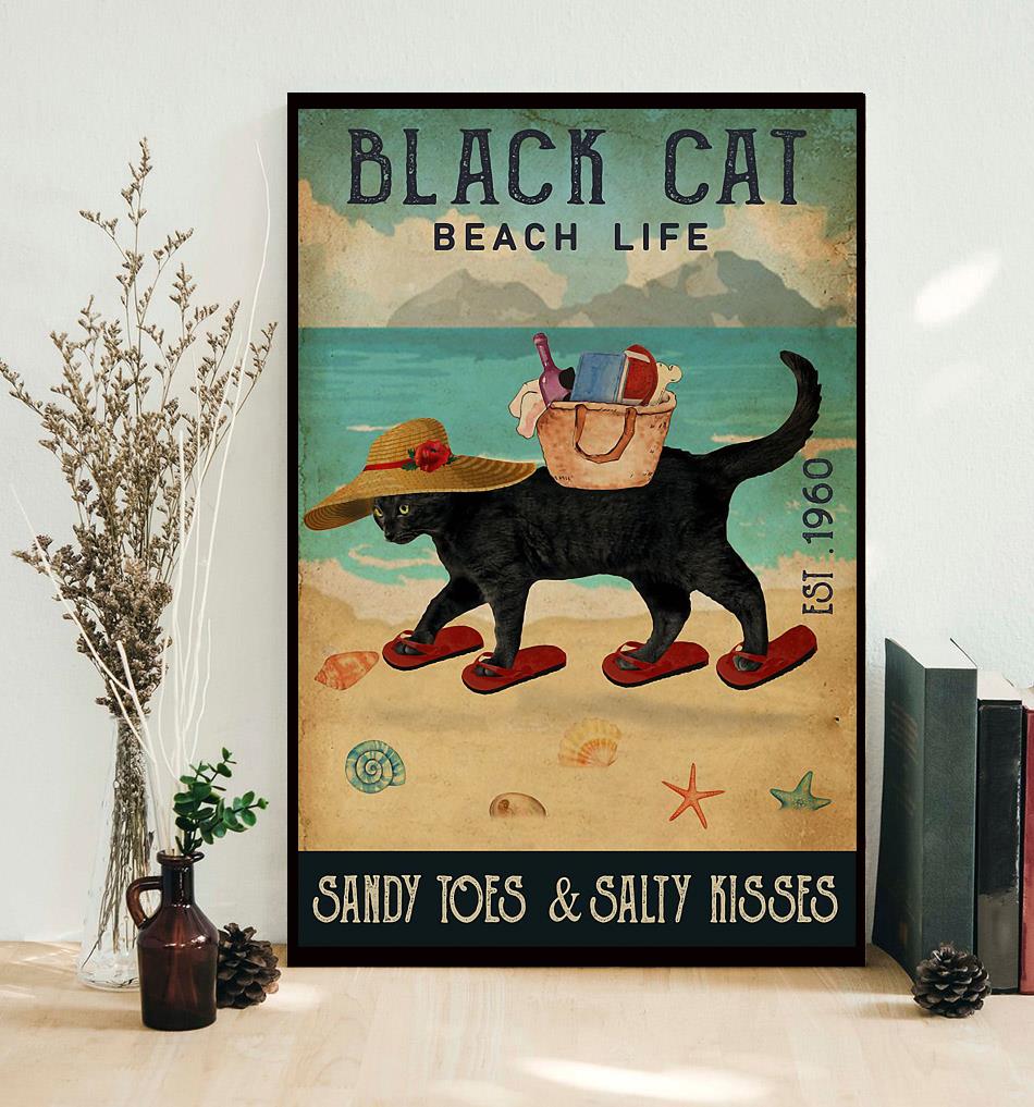 Black Cat Beach Life Sandy Toes And Salty Kisses Poster Canvas