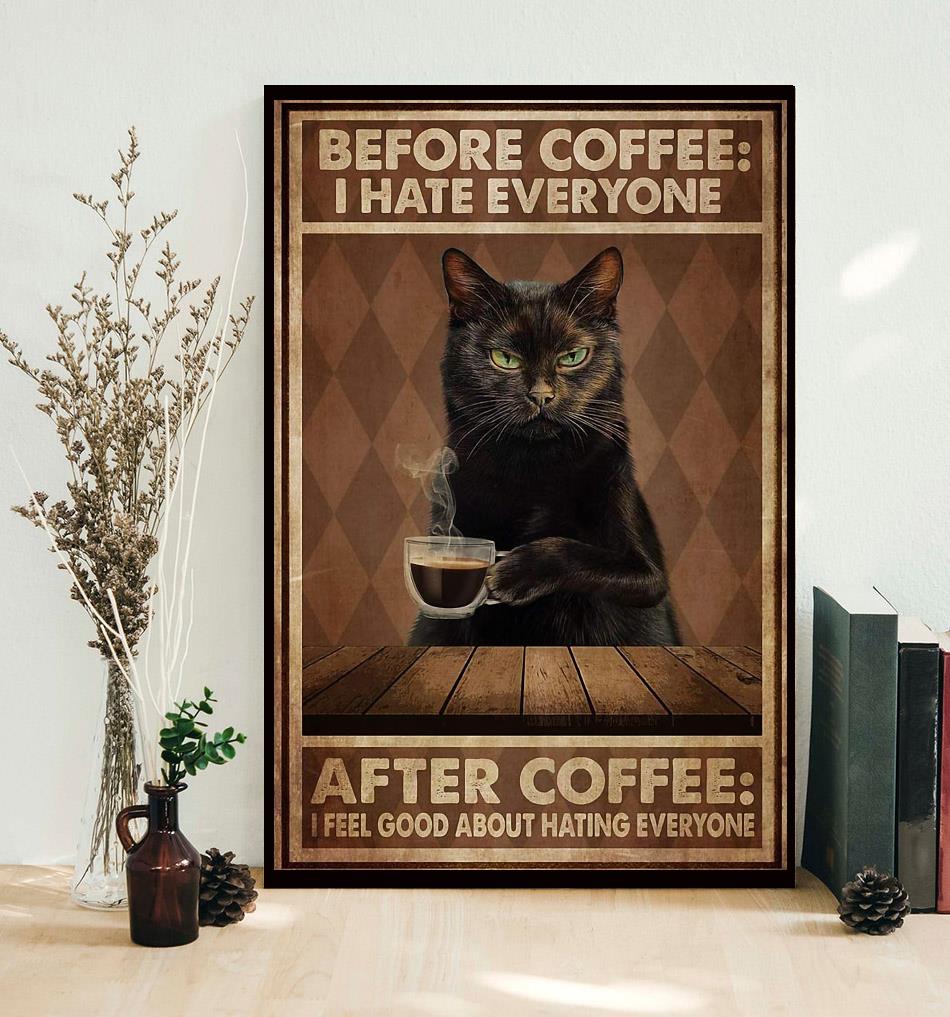 Black Cat Before Coffee I Hate Everyone Poster Canvas