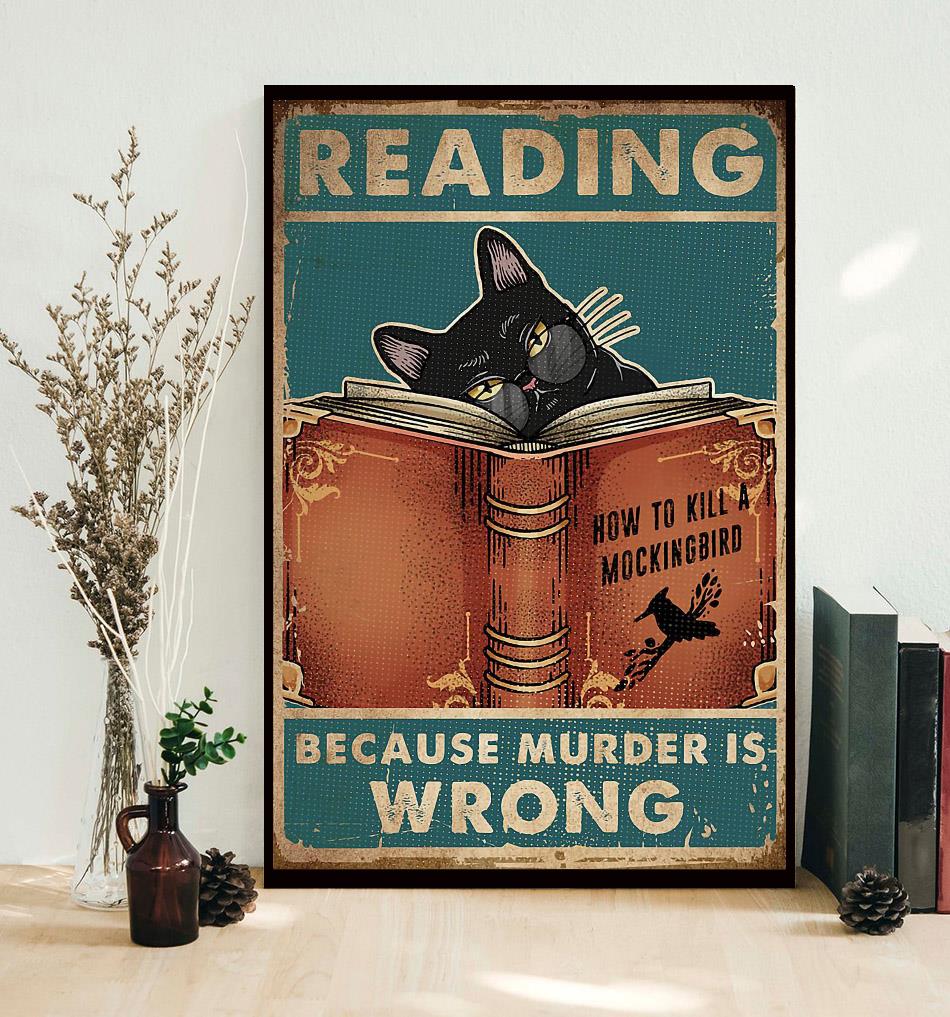 Black Cat Book Reading Baking Because Murder Is Wrong Poster Decor