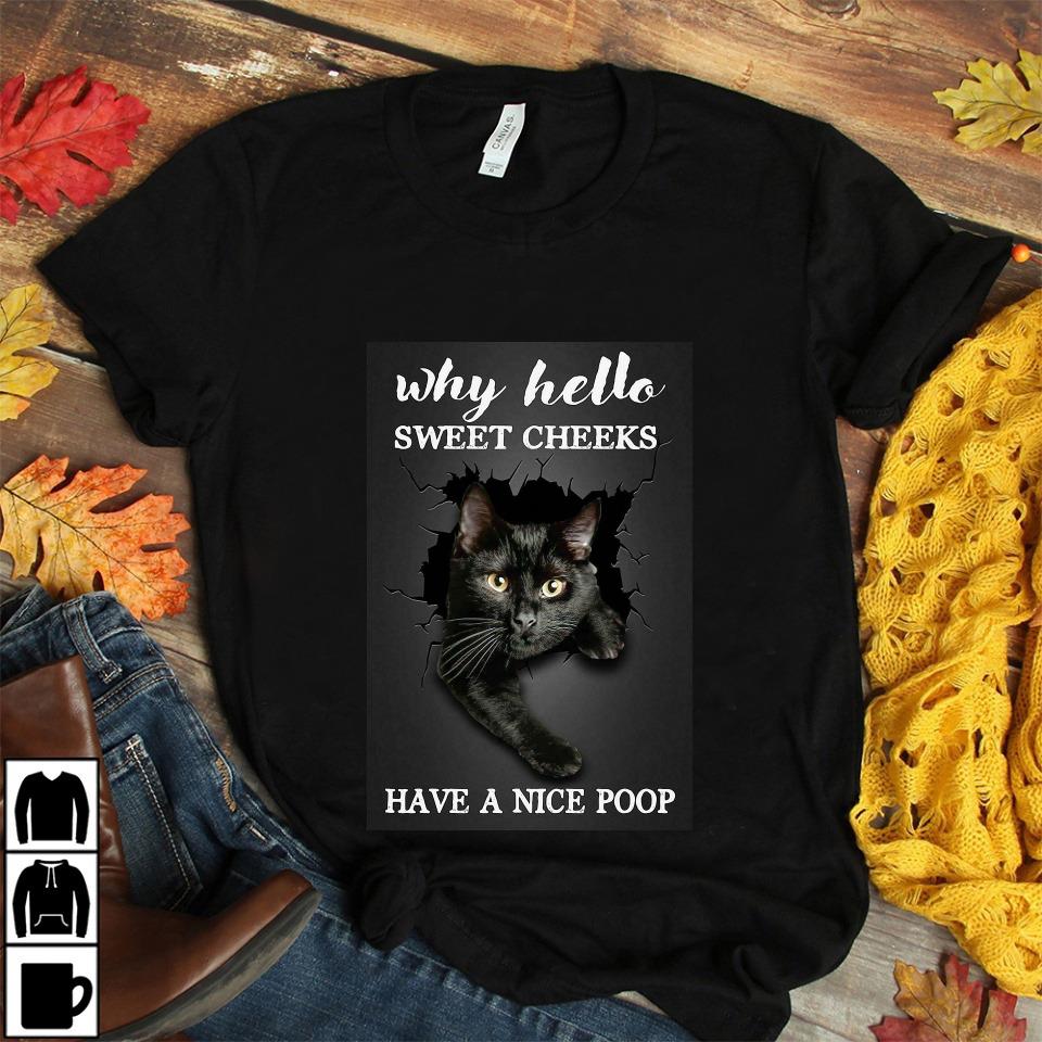 Black Cat Why Hello Sweet Cheeks Have Nice Poop Canvas Unisex T-shirt