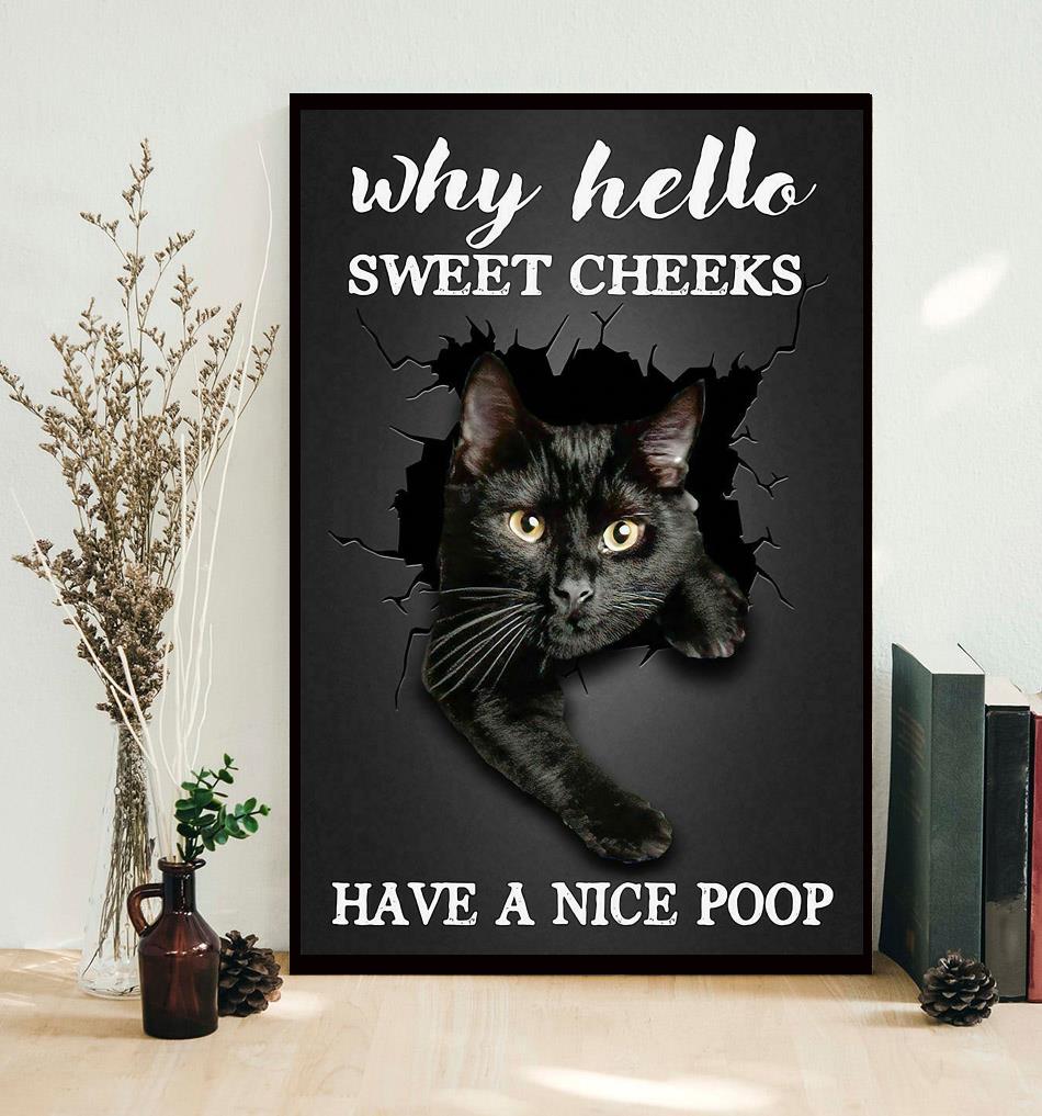 Black Cat Why Hello Sweet Cheeks Have Nice Poop Canvas