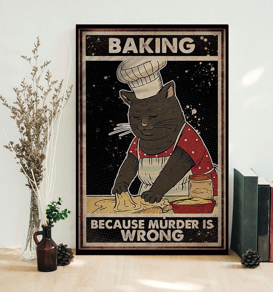 Black Kitty Baking Because Murder Is Wrong Poster Decor