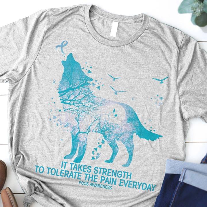 Blue Wolf It Takes Strength To Tolerate The Pain Everyday Pcos Awareness Shirt