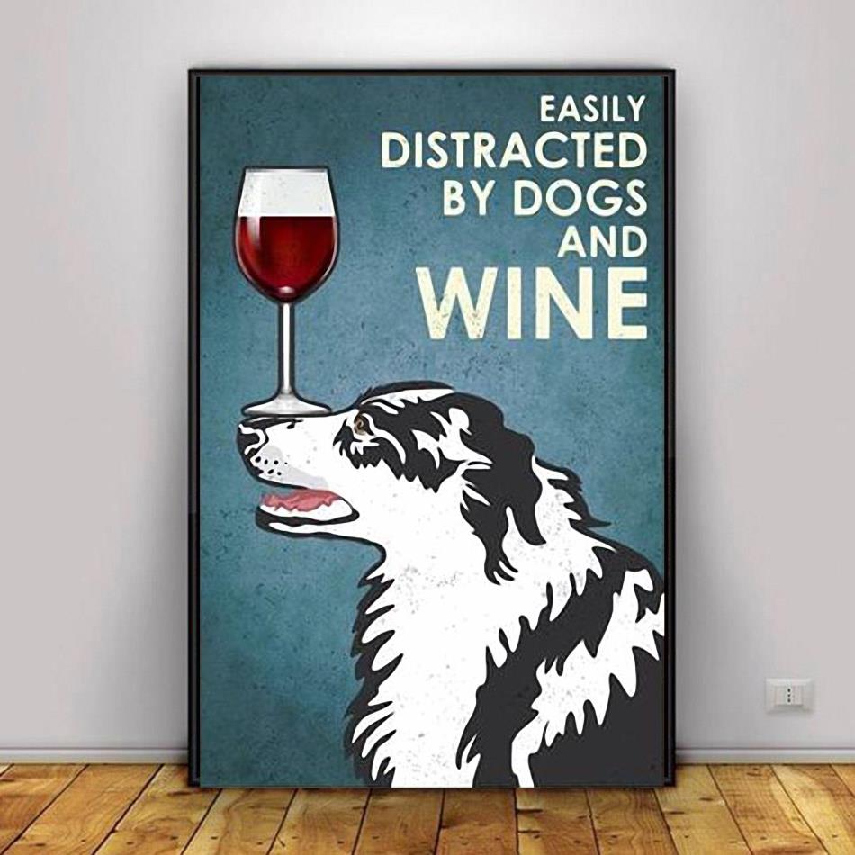Border Collie Easily Distracted By Dogs And Wine Poster Canvas Decor 1