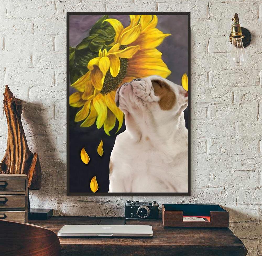 Bulldog Sunflower Poster Canvas