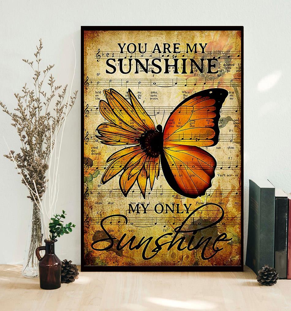Butterfly Sunflower You Are My Sunshine Music Sheet Poster