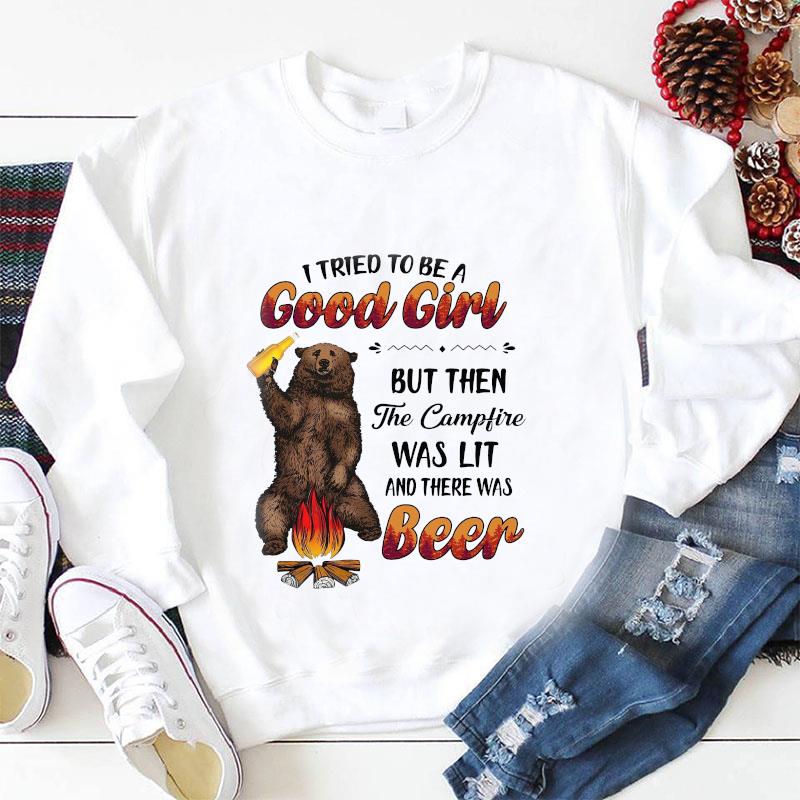 Camping Bear I Tried To Be A Good Girl But Then The Campfire Was Lit Beer