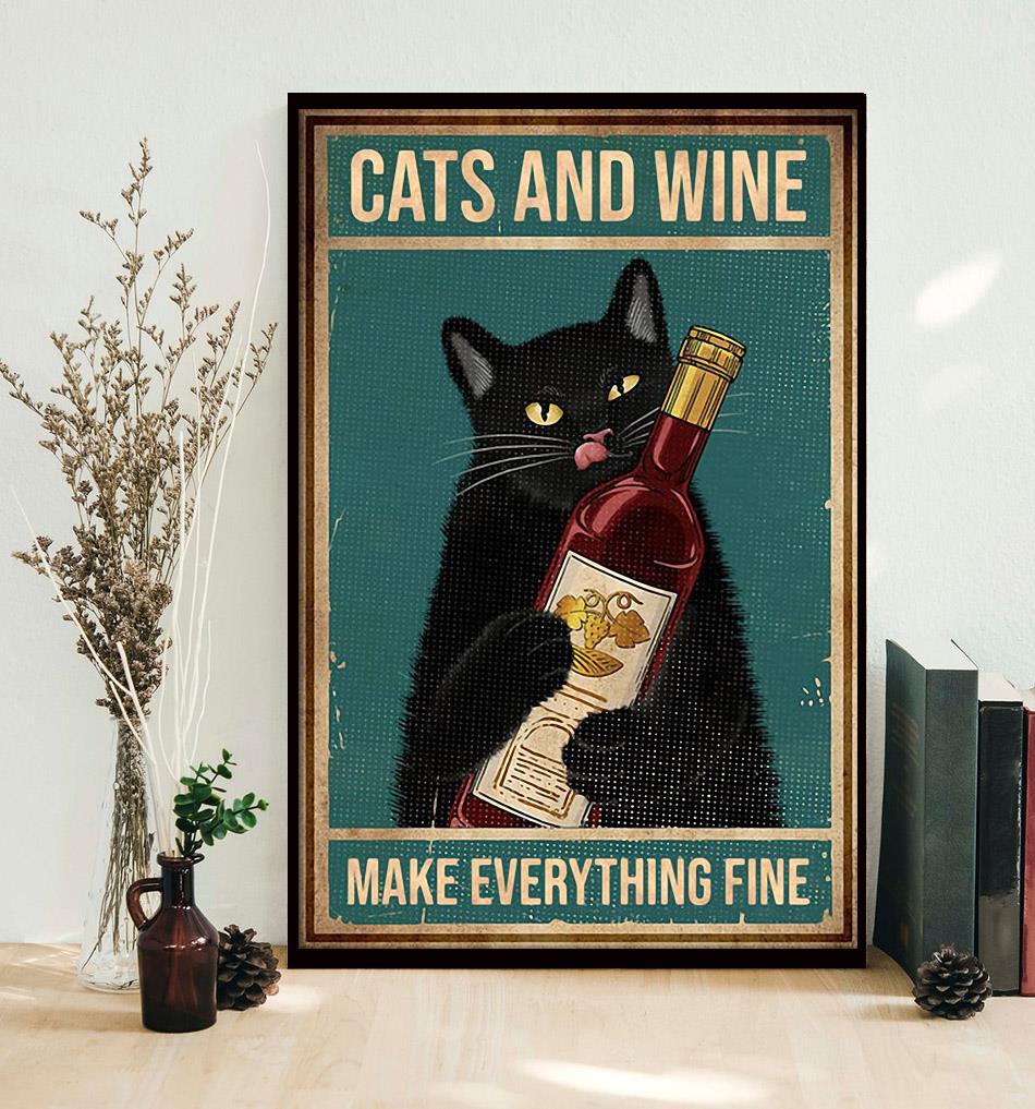 Cat And Wine Make Everything Fine Vintage Poster Canvas