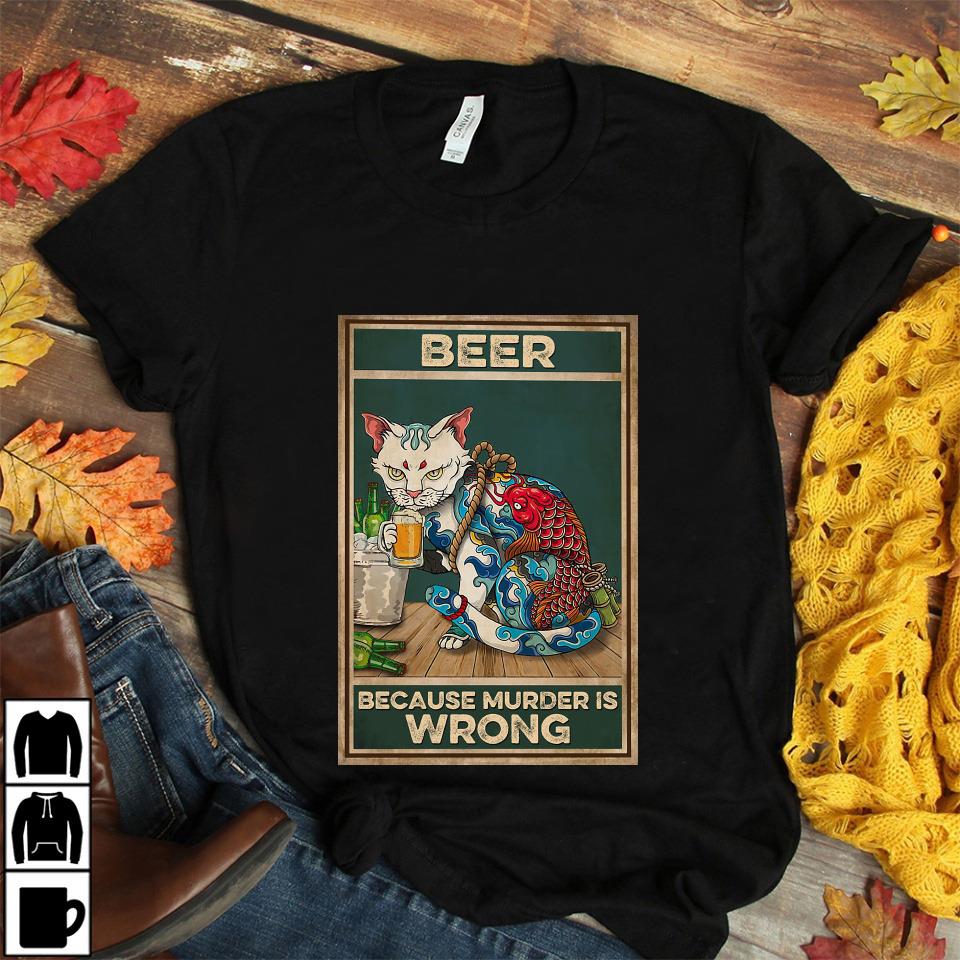 Cat Beer Because Murder Is Wrong Vintage Poster Unisex T-shirt