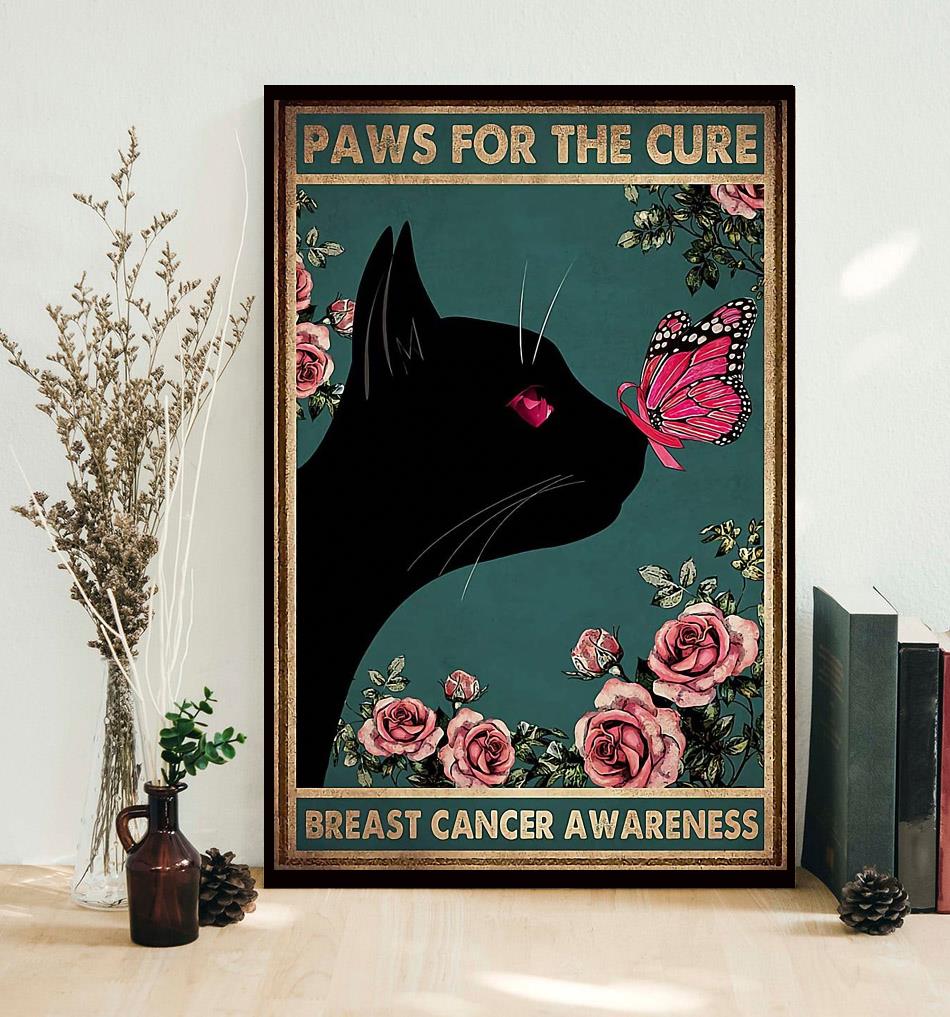 Cat Breast Cancer Awareness Paws For The Cure Poster