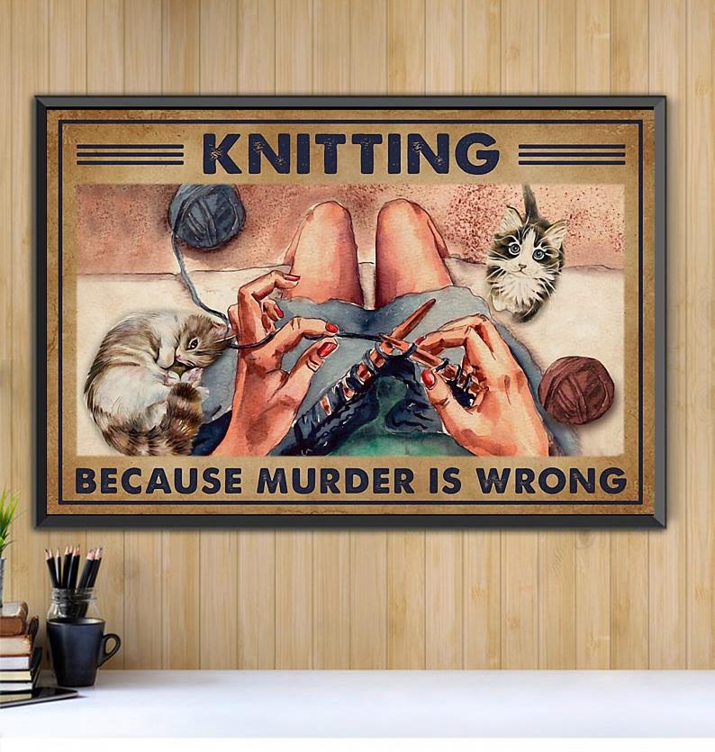 Cat Girl Knitting Because Murder Is Wrong Landscape Canvas