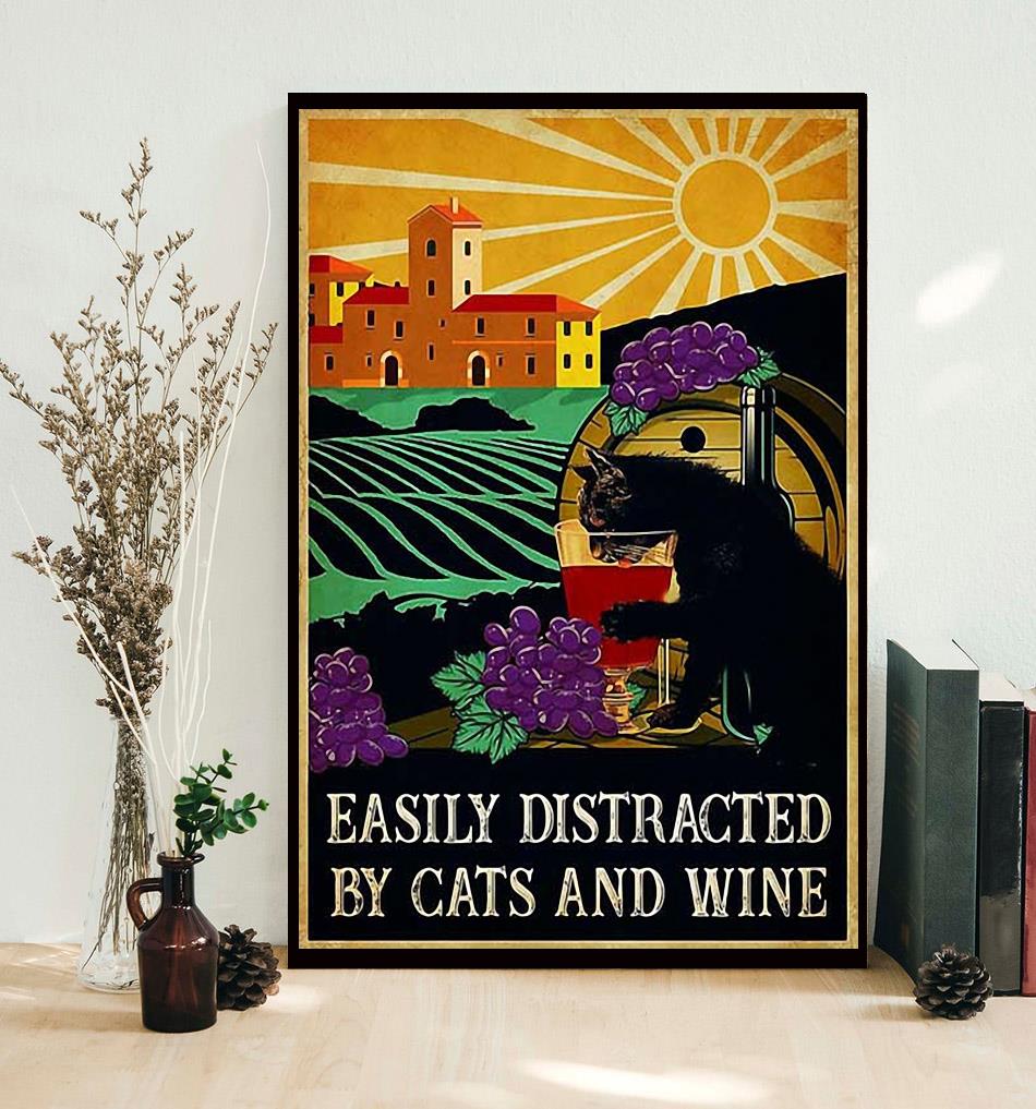 Cat Grape Wine Easily Distracted By Cats And Wine Poster