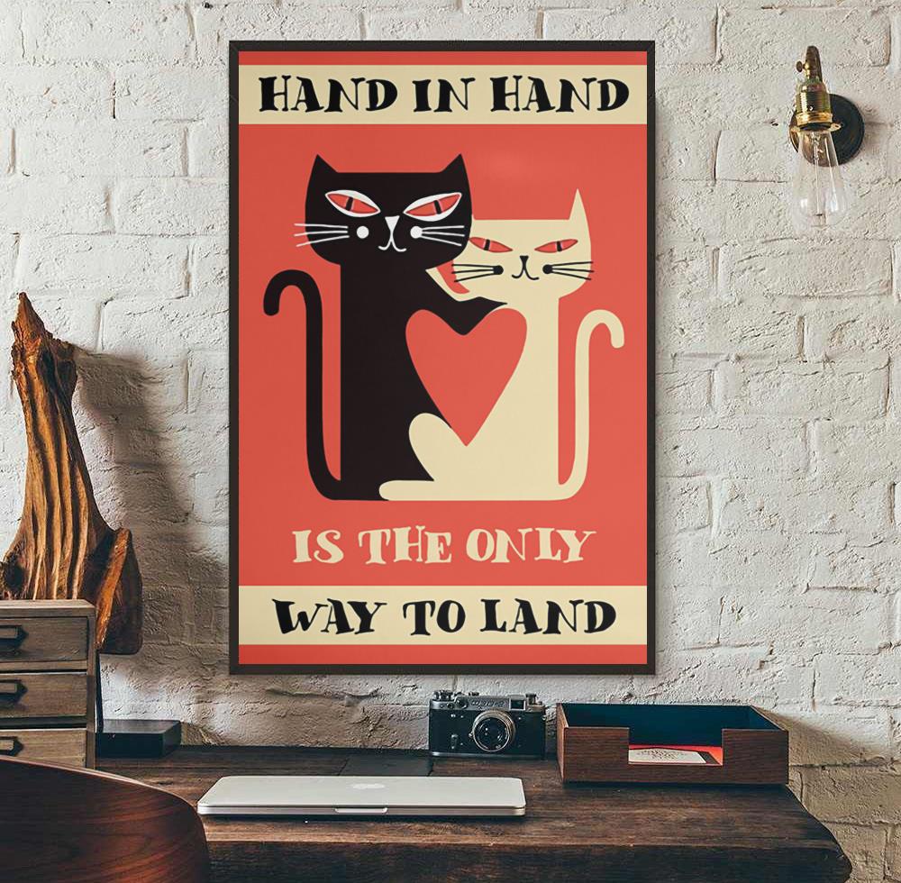 Cat Hand In Hand Is The Only Way To Land Poster Decor
