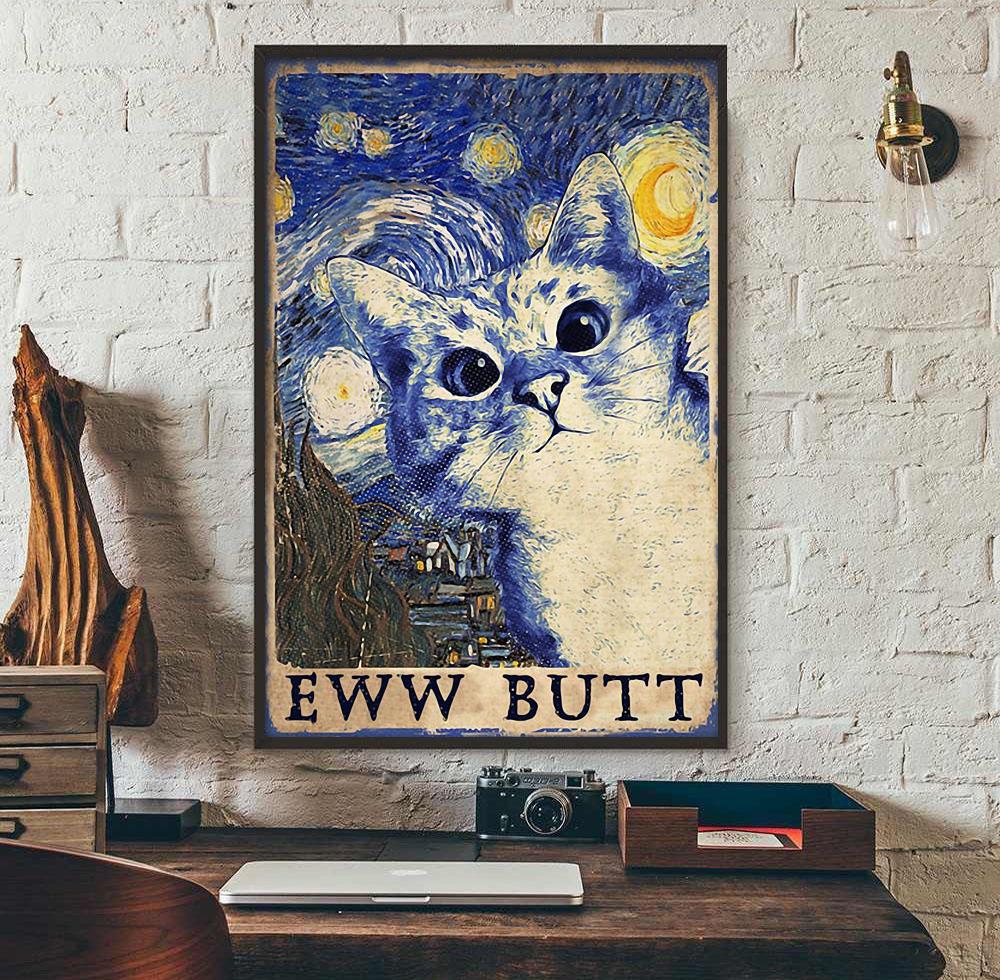 Cat Starry Night Eww Butt Poster Decor