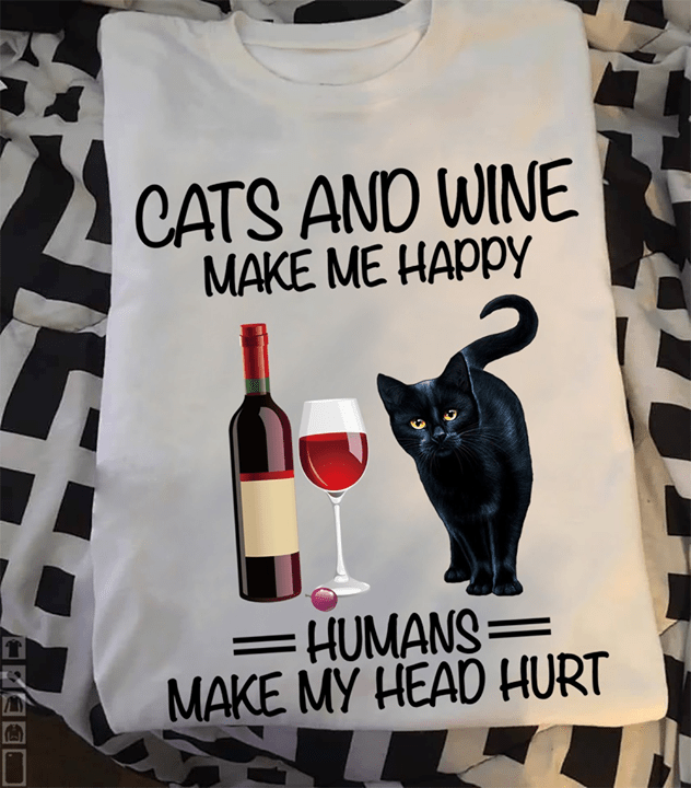 Cats And Wine Make Me Happy Humans Make My Head Hurt Shirt