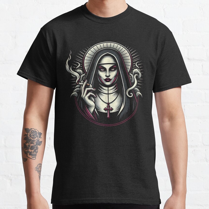 Cigarette Smoking Nun Occult Gothic Dark Nun Graphic Vuitino Apparel