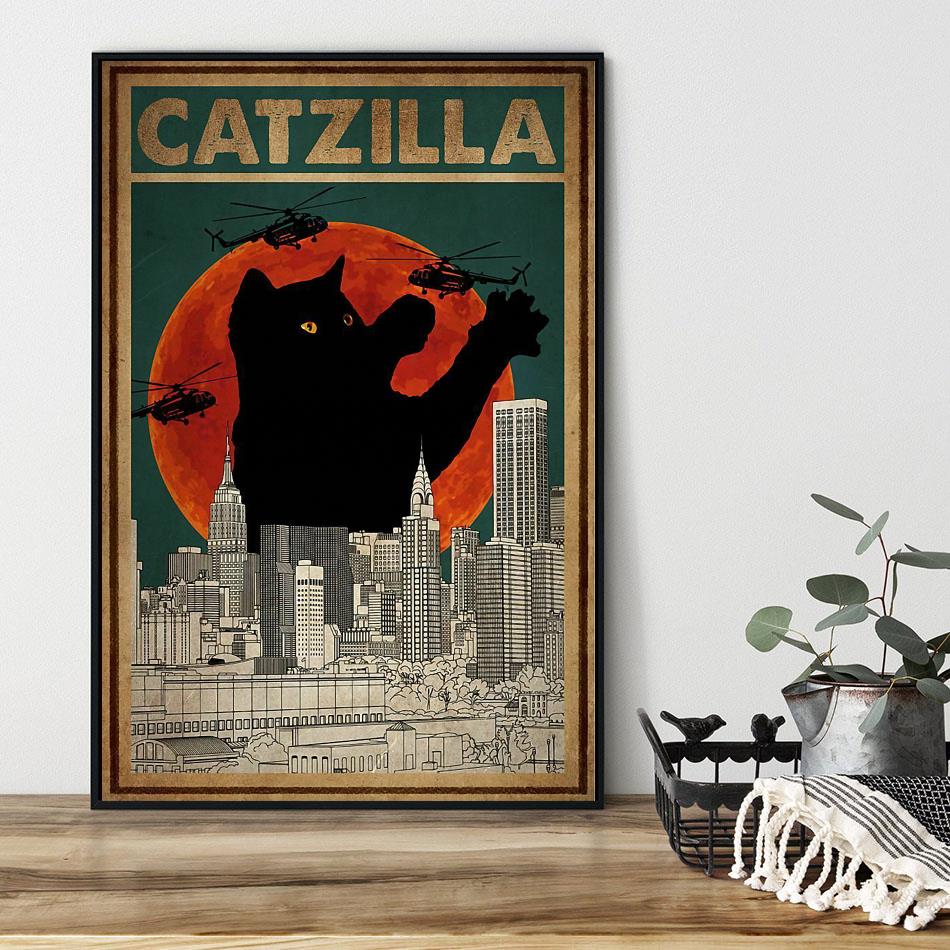 City Helicopter Cat Catzilla Poster