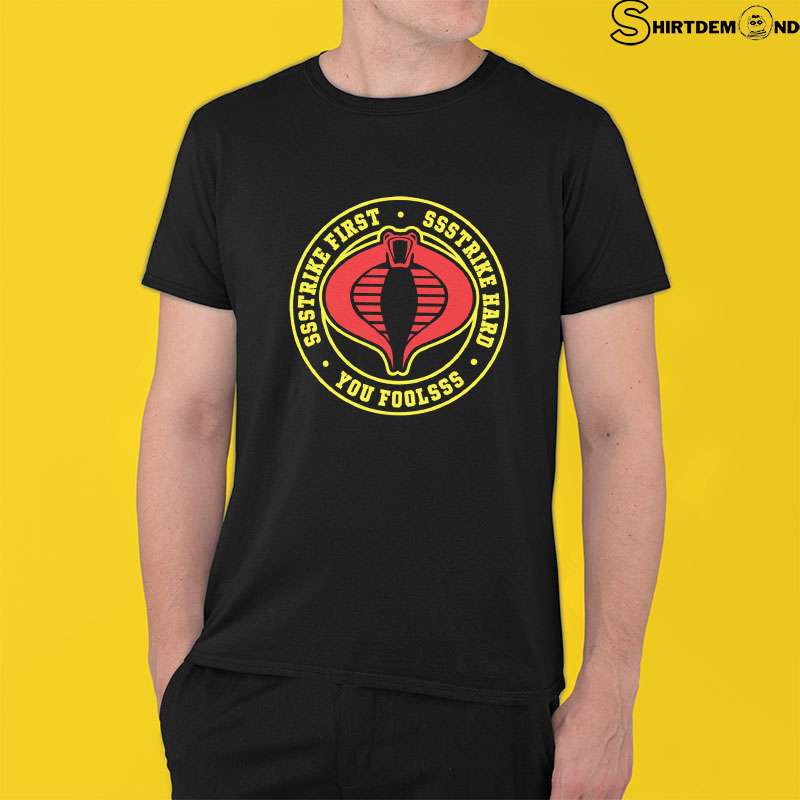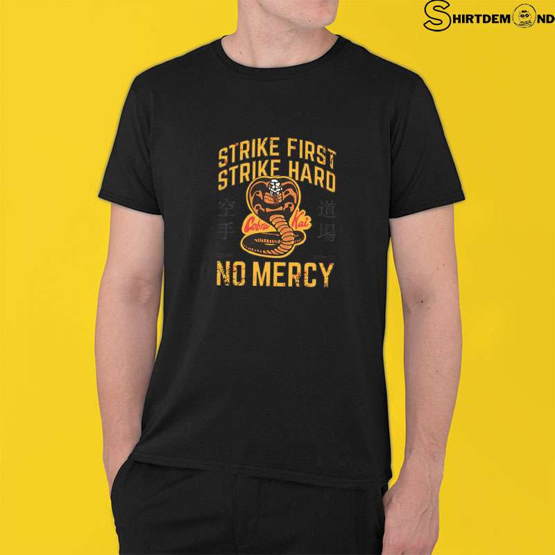 Cobra Kai Shirt Cobra Kai Karate Strike First 80s Tv Distress Yellow Version T Shirt